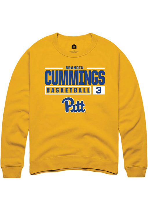 Brandin Cummings Rally Mens Gold Pitt Panthers NIL Stacked Box Crew Sweatshirt