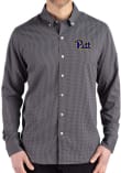 Mens Pitt Panthers Black Cutter and Buck Gingham LS Woven Long Sleeve Dress Shirt