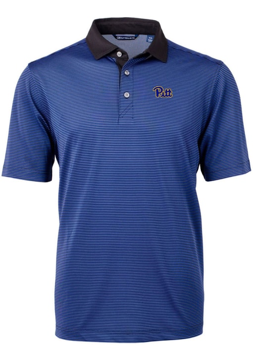 Enhance your professional style with this striking Mens Blue Short Sleeve Polo Shirt! Showcase your team pride among colleagues with this exceptional Panthers Blue Virtue Eco Pique Micro Stripe Short Sleeve Polo. Stand out and make a statement in this Pitt Panthers Short Sleeve Polo, featuring a cooling effect, and UPF sun protection that adds a touch of distinction to your look.
