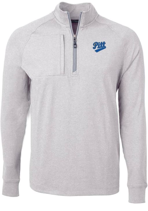 Embrace the warmth and showcase your Panthers pride with our Pitt Panthers Long Sleeve Qtr Zip Pullover. This Mens Grey Vault Adapt Eco Long Sleeve Pullover offers a wind resistant recycled knit for the perfect combination of comfort and style. Elevate your everyday look with this must-have Pitt Panthers Long Sleeve Qtr Zip Pullover.