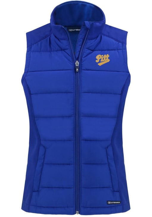 Gear up for the upcoming tailgate with the ultimate Pitt Panthers Womens Blue Vest. Stay warm in this Panthers Vault Evoke Sleeveless Jacket, which features a 100% recycled polyester bonded honeycomb softshell.