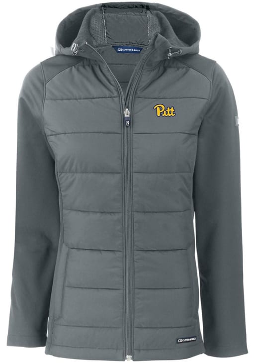 Stay warm and cozy with this Pitt Panthers Womens Grey Evoke Hood Heavy Weight Jacket! Cheer on the Panthers in this Panthers Heavy Weight Jacket. With a 100% recycled polyester bonded honeycomb softshell, you won't want to be caught without this Heavy Weight Jacket on gameday.
