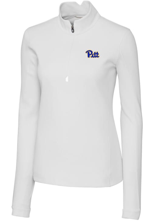 Embrace the warmth and showcase your Panthers pride with our Pitt Panthers Long Sleeve Qtr Zip. This Womens White Traverse Long Sleeve Pullover offers a high quality 2-ply DryTec matte finish polyester for the perfect combination of comfort and style. Elevate your everyday look with this must-have Pitt Panthers Long Sleeve Qtr Zip.