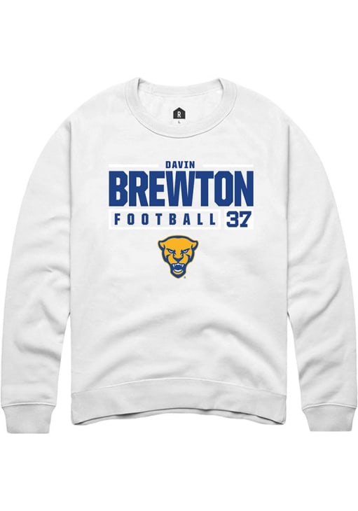 Davin Brewton Rally Mens White Pitt Panthers NIL Stacked Box Crew Sweatshirt