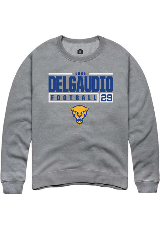 Luke DelGaudio Rally Mens Graphite Pitt Panthers NIL Stacked Box Crew Sweatshirt