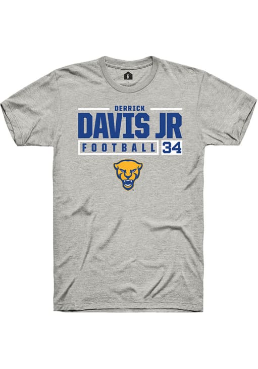 Derrick Davis Jr Ash Pitt Panthers NIL Stacked Box Short Sleeve T Shirt