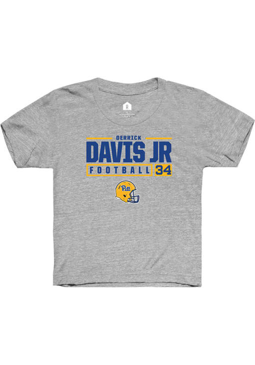 Derrick Davis Jr Rally Youth Grey Pitt Panthers NIL Stacked Box Short Sleeve T-Shirt