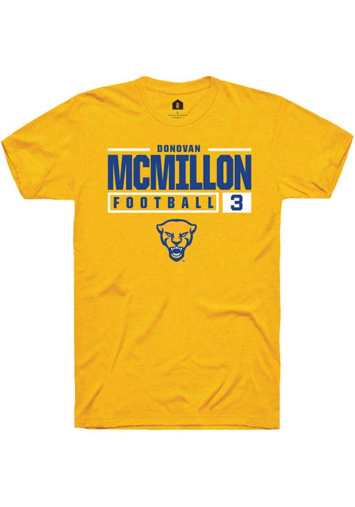 Donovan McMillon Gold Pitt Panthers NIL Stacked Box Short Sleeve T Shirt