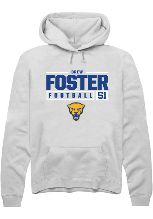 Drew Foster Rally Mens White Pitt Panthers NIL Stacked Box Hooded Sweatshirt