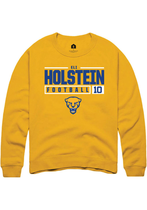 Eli Holstein Rally Mens Gold Pitt Panthers NIL Stacked Box Crew Sweatshirt
