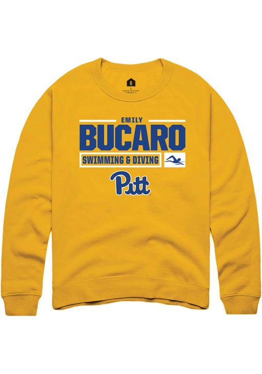 Emily Bucaro Rally Mens Gold Pitt Panthers NIL Stacked Box Crew Sweatshirt