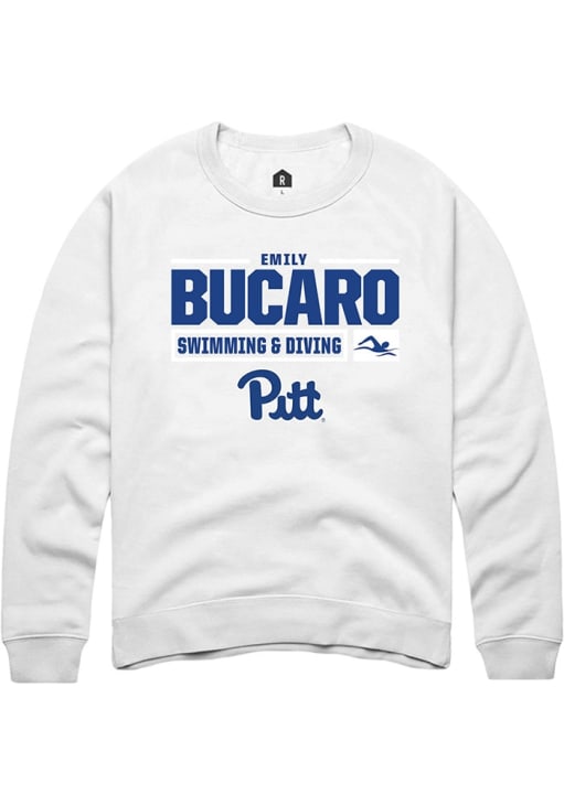 Emily Bucaro Rally Mens White Pitt Panthers NIL Stacked Box Crew Sweatshirt