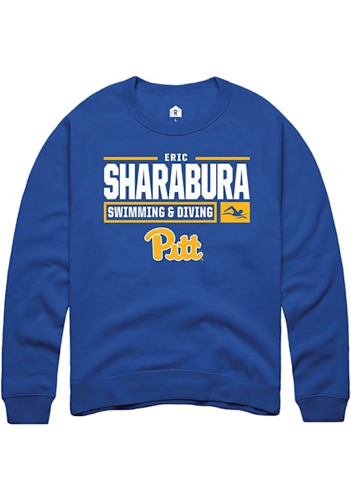 Eric Sharabura Rally Mens Blue Pitt Panthers NIL Stacked Box Crew Sweatshirt