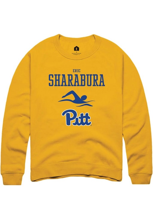 Eric Sharabura Rally Mens Gold Pitt Panthers NIL Sport Icon Crew Sweatshirt