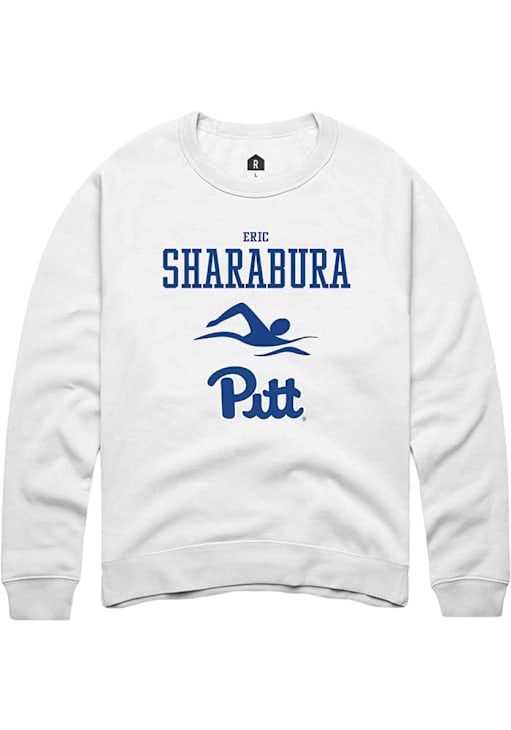 Eric Sharabura Rally Mens White Pitt Panthers NIL Sport Icon Crew Sweatshirt