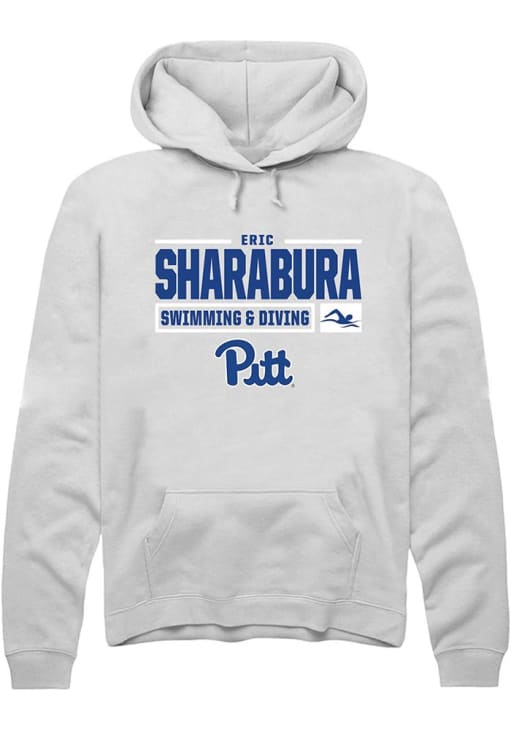 Eric Sharabura Rally Mens White Pitt Panthers NIL Stacked Box Hooded Sweatshirt
