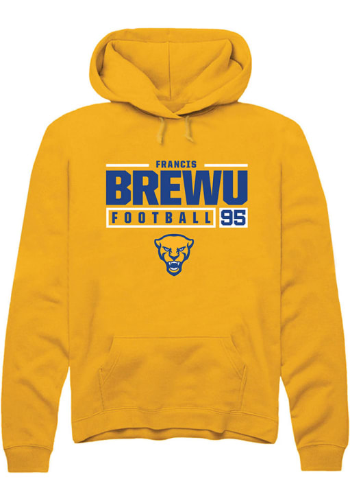Francis Brewu Rally Mens Gold Pitt Panthers NIL Stacked Box Hooded Sweatshirt