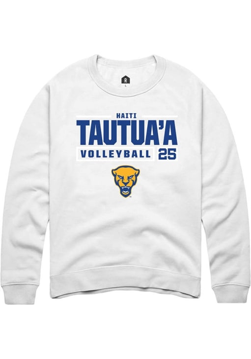 Haiti Tautua’a Rally Mens White Pitt Panthers NIL Stacked Box Crew Sweatshirt
