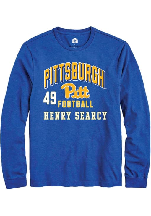 Embrace the spirit of your favorite player in this Pitt Panthers Blue Football NIL Arch Logo Henry Searcy Long Sleeve Player Tee! This Player T Shirt features a NIL graphic, so everyone will know you cheer for Panthers, Henry Searcy! This is the perfect Panthers Player Tee for game days. Go Panthers!