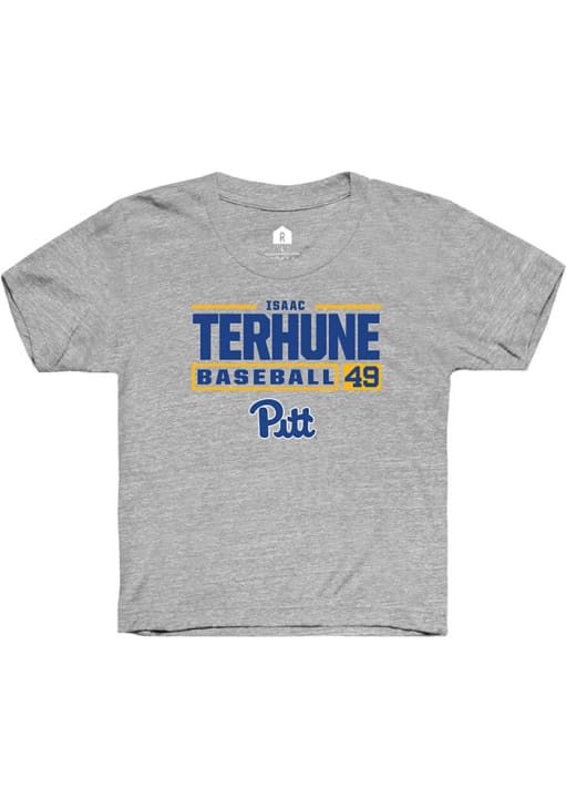 Isaac Terhune Rally Youth Grey Pitt Panthers NIL Stacked Box Short Sleeve T-Shirt