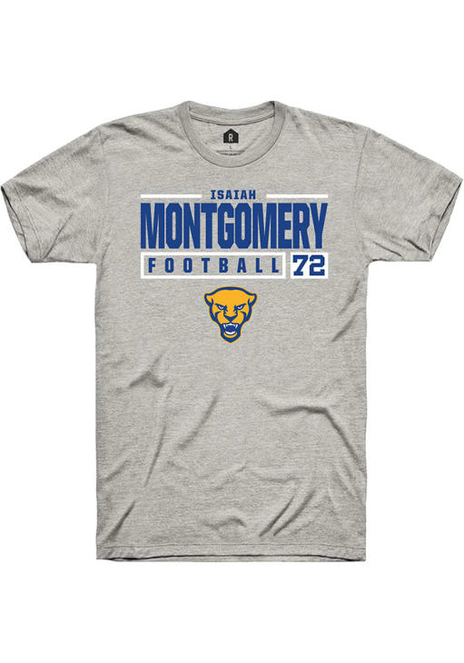 Isaiah Montgomery Ash Pitt Panthers NIL Stacked Box Short Sleeve T Shirt
