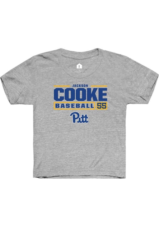 Jackson Cooke Rally Youth Grey Pitt Panthers NIL Stacked Box Short Sleeve T-Shirt