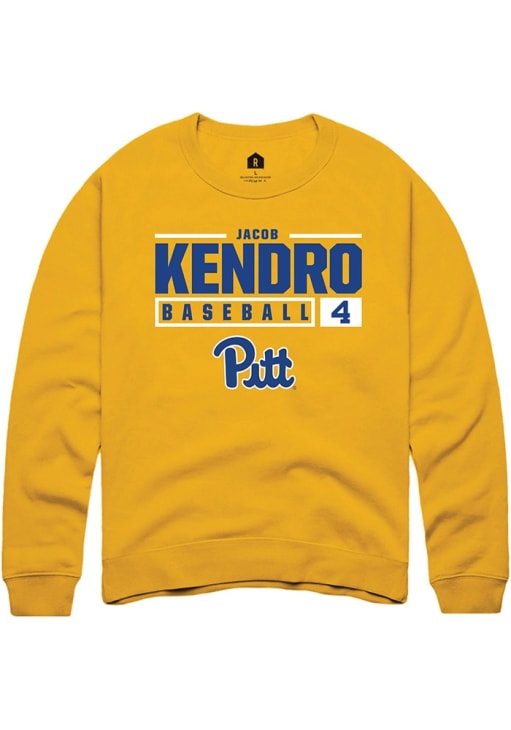 Jacob Kendro Rally Mens Gold Pitt Panthers NIL Stacked Box Crew Sweatshirt