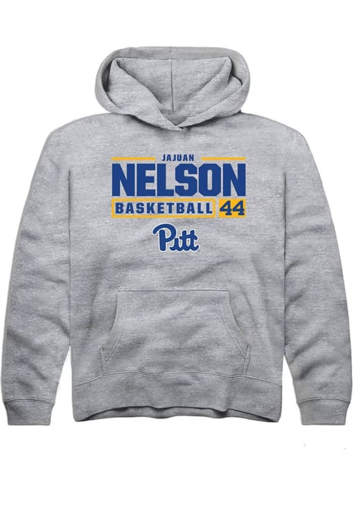 Jajuan Nelson Rally Youth Grey Pitt Panthers NIL Stacked Box Long Sleeve Hooded Sweatshirt