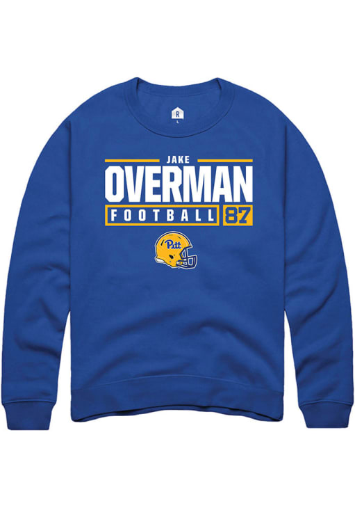 Jake Overman Rally Mens Blue Pitt Panthers NIL Stacked Box Crew Sweatshirt