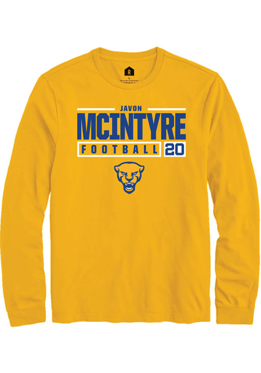 Javon Mcintyre Rally Mens Gold Pitt Panthers NIL Stacked Box Tee