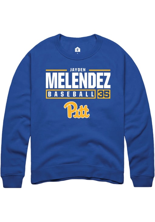 Jayden Melendez Rally Mens Blue Pitt Panthers NIL Stacked Box Crew Sweatshirt