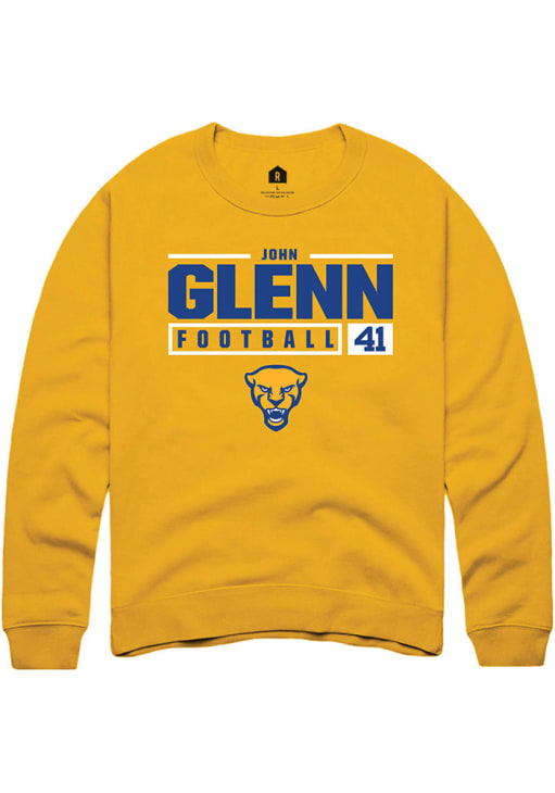 John Glenn Rally Mens Gold Pitt Panthers NIL Stacked Box Crew Sweatshirt