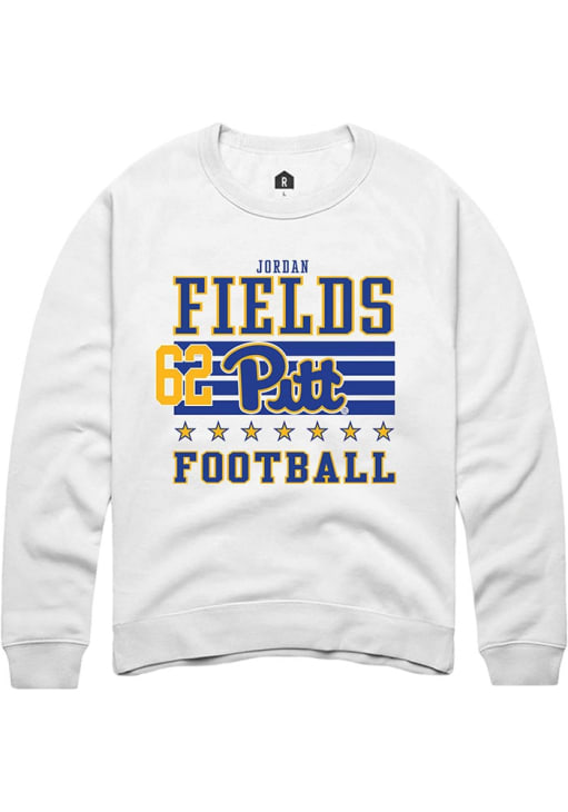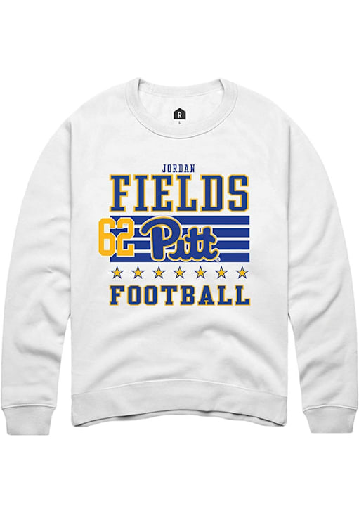 Support your Pitt Panthers and favorite Jordan Fields in this Pitt Panthers Mens White Football NIL Striped Player Crew. This Crew Sweatshirt features a NIL graphic, and is sure to stand out in the stadium. Perfect to wear on game day or any day!