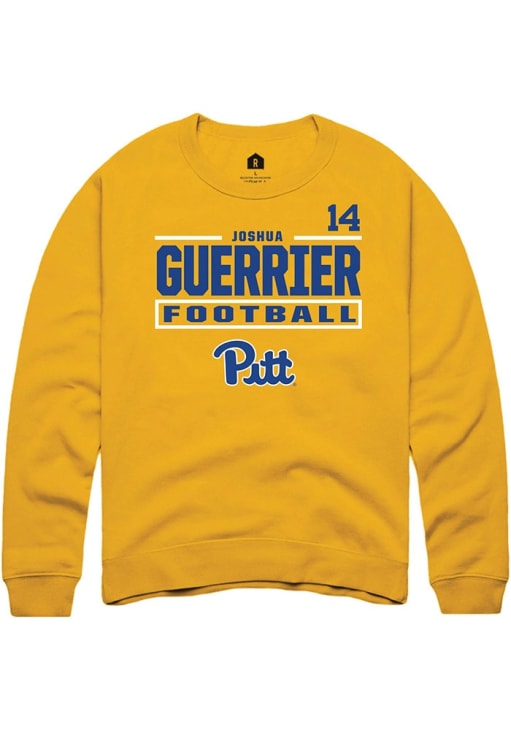 Support your Pitt Panthers and favorite Joshua Guerrier in this Pitt Panthers Mens Gold Football NIL Stacked Box Player Crew. This Crew Sweatshirt features a NIL graphic, and is sure to stand out in the stadium. Perfect to wear on game day or any day!