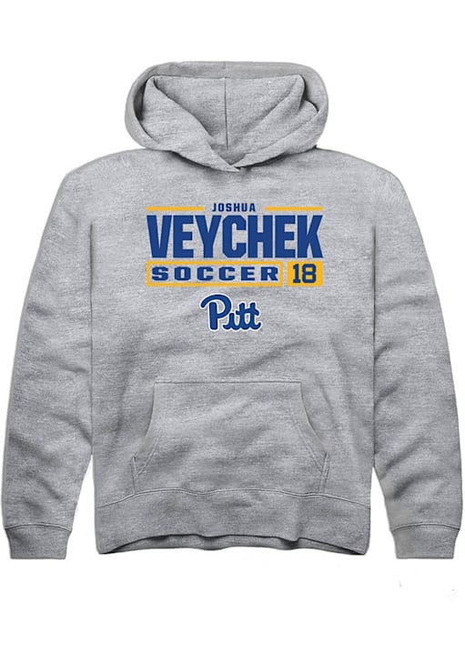 Joshua Veychek Rally Youth Grey Pitt Panthers NIL Stacked Box Long Sleeve Hooded Sweatshirt