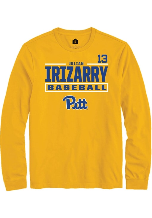 Julian Irizarry Rally Mens Gold Pitt Panthers NIL Stacked Box Tee