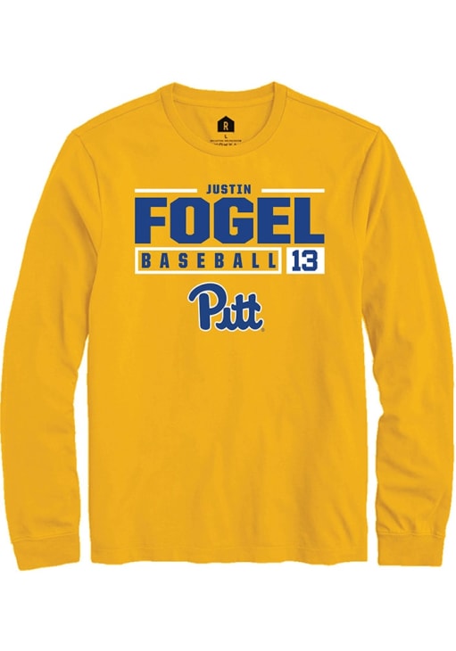 Justin Fogel Rally Mens Gold Pitt Panthers NIL Stacked Box Tee