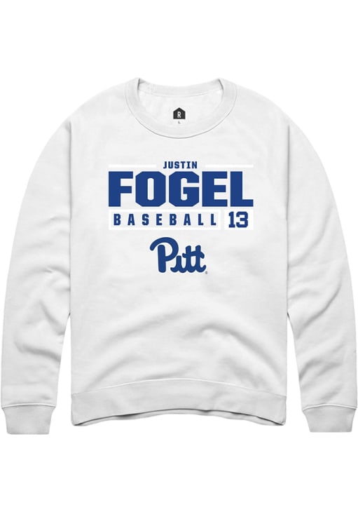 Justin Fogel Rally Mens White Pitt Panthers NIL Stacked Box Crew Sweatshirt