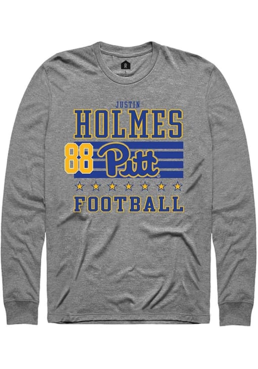 Embrace the spirit of your favorite player in this Pitt Panthers Grey Football NIL Striped Justin Holmes Long Sleeve Player Tee! This Player T Shirt features a NIL graphic, so everyone will know you cheer for Panthers, Justin Holmes! This is the perfect Panthers Player Tee for game days. Go Panthers!