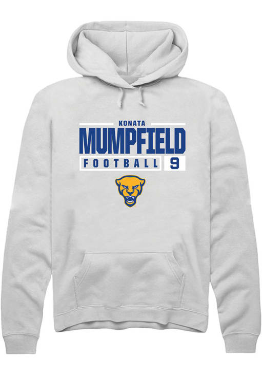 Konata Mumpfield Rally Mens White Pitt Panthers NIL Stacked Box Hooded Sweatshirt