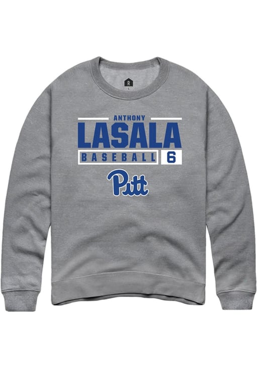 Anthony LaSala Rally Mens Graphite Pitt Panthers NIL Stacked Box Crew Sweatshirt