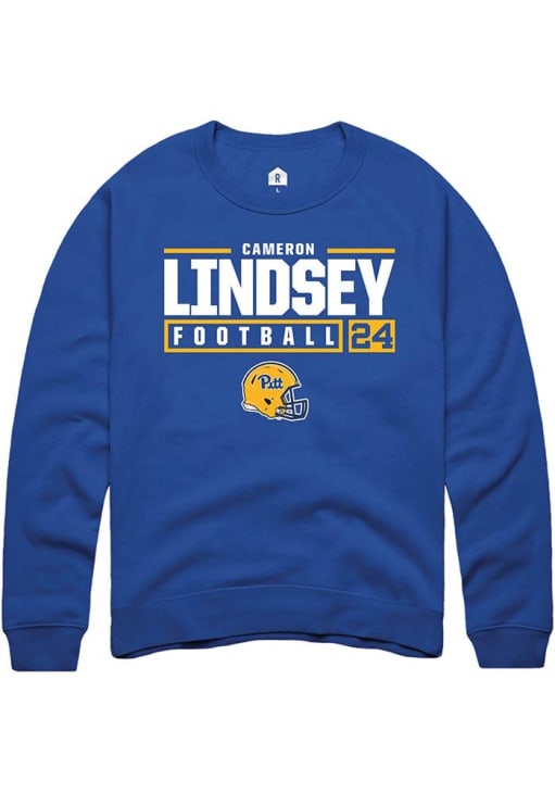 Cameron Lindsey Rally Mens Blue Pitt Panthers NIL Stacked Box Crew Sweatshirt