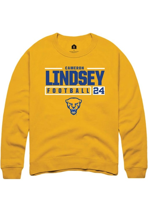 Cameron Lindsey Rally Mens Gold Pitt Panthers NIL Stacked Box Crew Sweatshirt