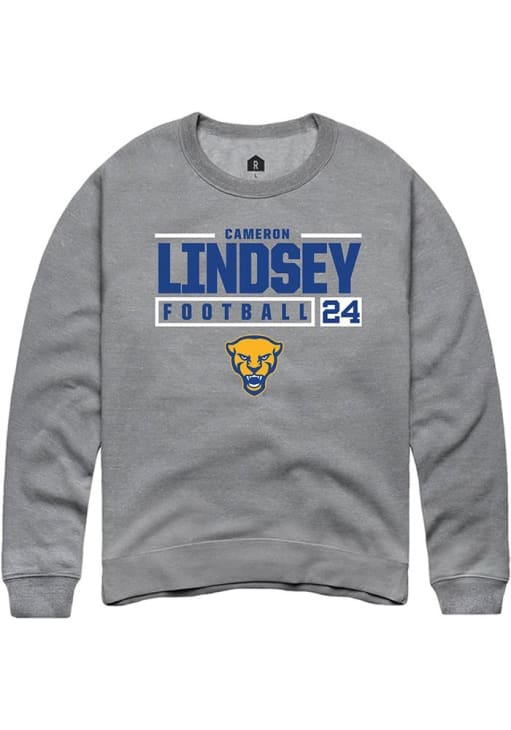 Cameron Lindsey Rally Mens Graphite Pitt Panthers NIL Stacked Box Crew Sweatshirt