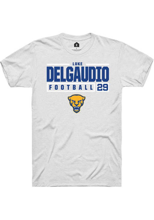 Luke DelGaudio White Pitt Panthers NIL Stacked Box Short Sleeve T Shirt