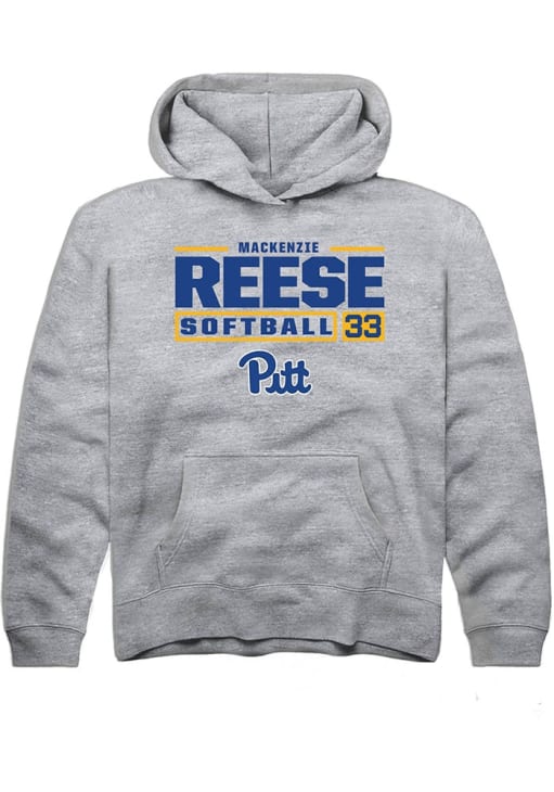 Mackenzie Reese Rally Youth Grey Pitt Panthers NIL Stacked Box Long Sleeve Hooded Sweatshirt