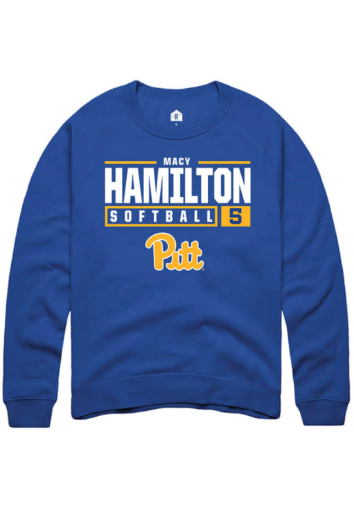 Macy Hamilton Rally Mens Blue Pitt Panthers NIL Stacked Box Crew Sweatshirt