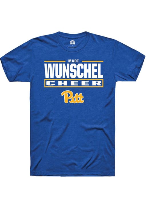 Madi Wunschel Rally Mens Blue Pitt Panthers NIL Stacked Box Player T Shirt