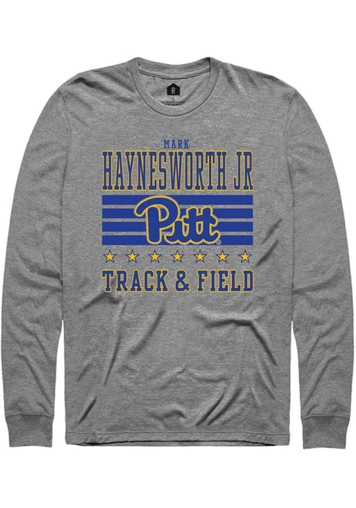 Embrace the spirit of your favorite player in this Pitt Panthers Grey NIL Striped Mark Jr Haynesworth Long Sleeve Player Tee! This Player T Shirt features a NIL graphic, so everyone will know you cheer for Panthers, Mark Jr Haynesworth! This is the perfect Panthers Player Tee for game days. Go Panthers!