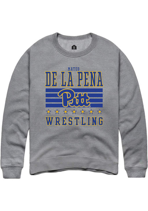 Mateo de la Pena Rally Mens Grey Pitt Panthers NIL Striped Crew Sweatshirt